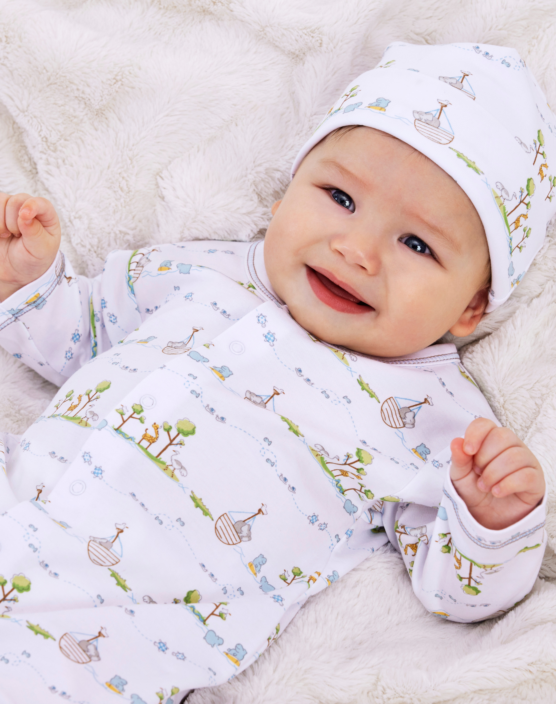Discover pure comfort and adorable style in our Pima cotton baby clothes collection featuring an enchanting array of animal-inspired designs and prints.