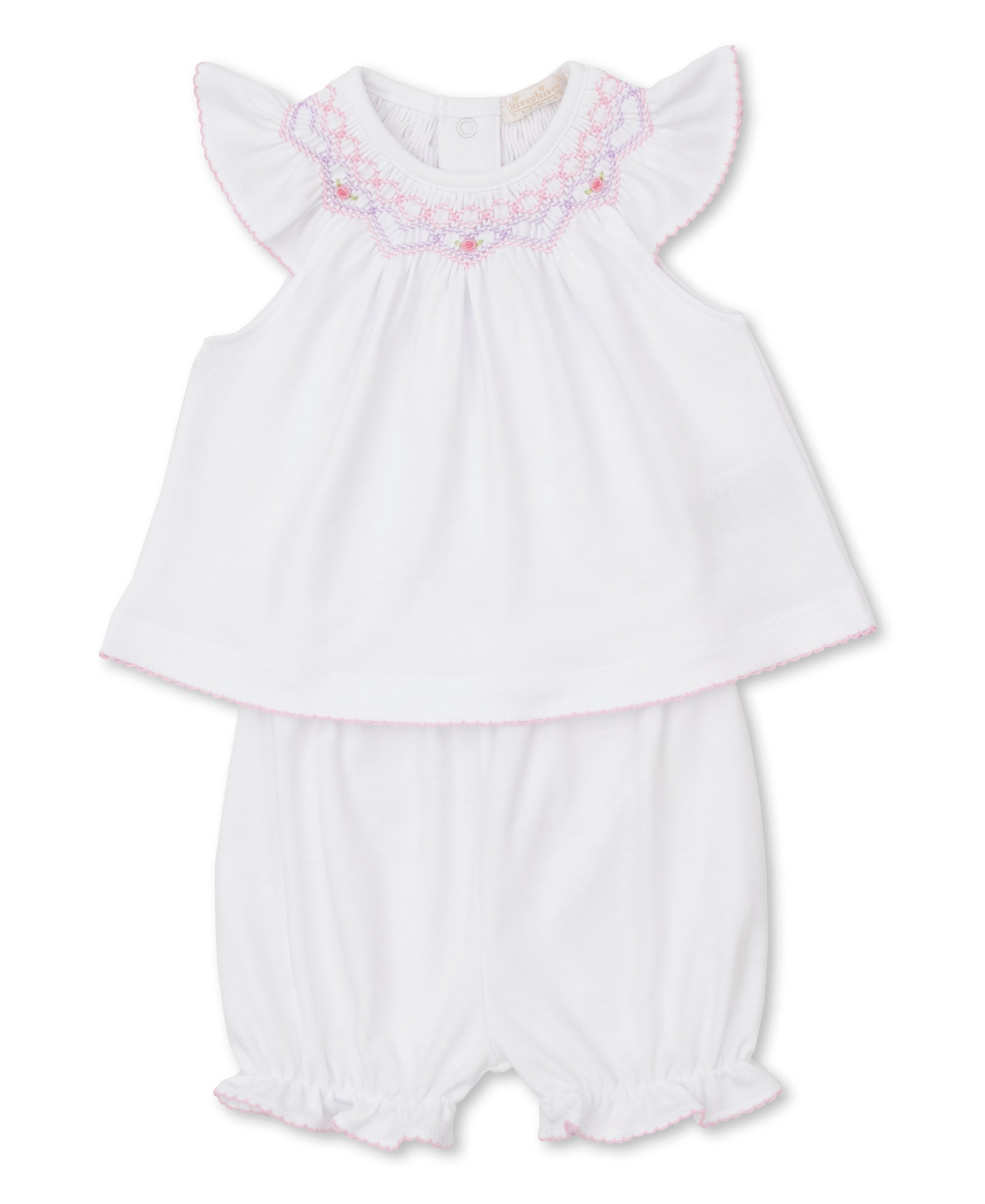 CLB Summer 26 White Hand Smocked Short Playsuit - Kissy KissyCLB Summer 26 White Hand Smocked Short Playsuit - Kissy Kissy