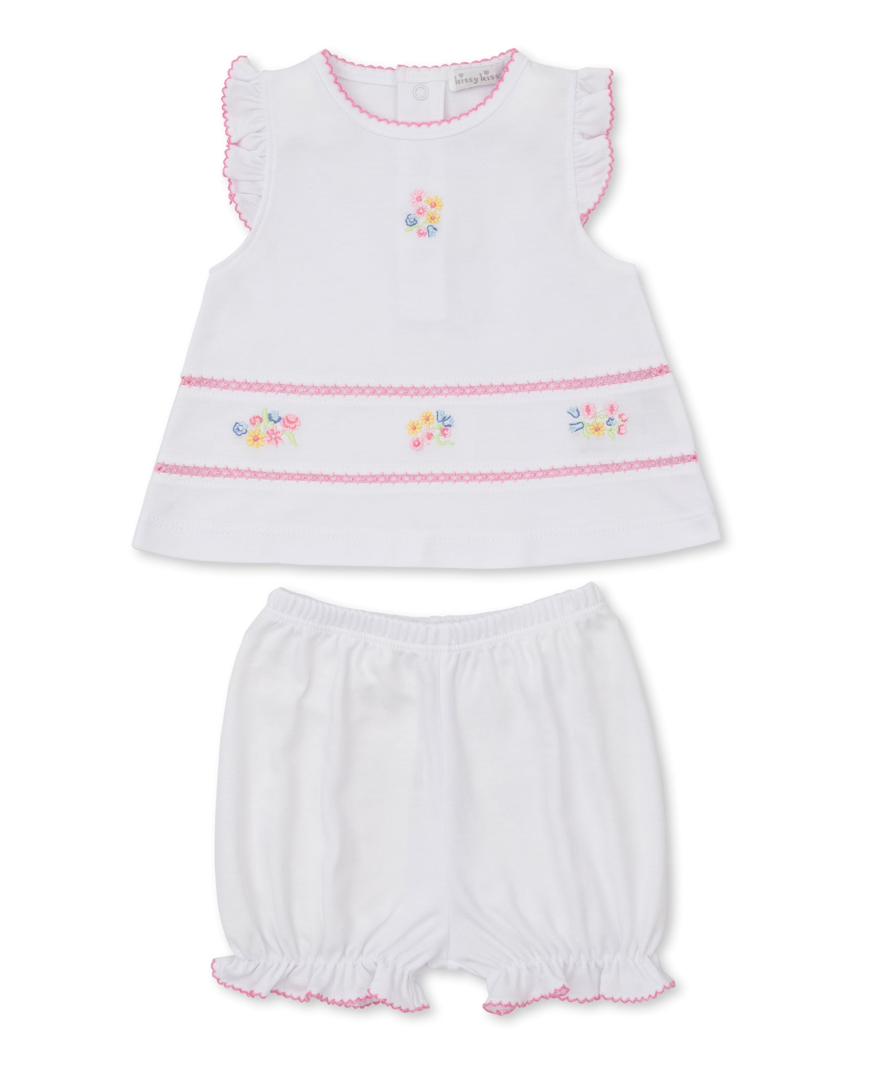 Country Gardens Pink Short Smocked Playsuit - Kissy KissyCountry Gardens Pink Short Smocked Playsuit - Kissy Kissy