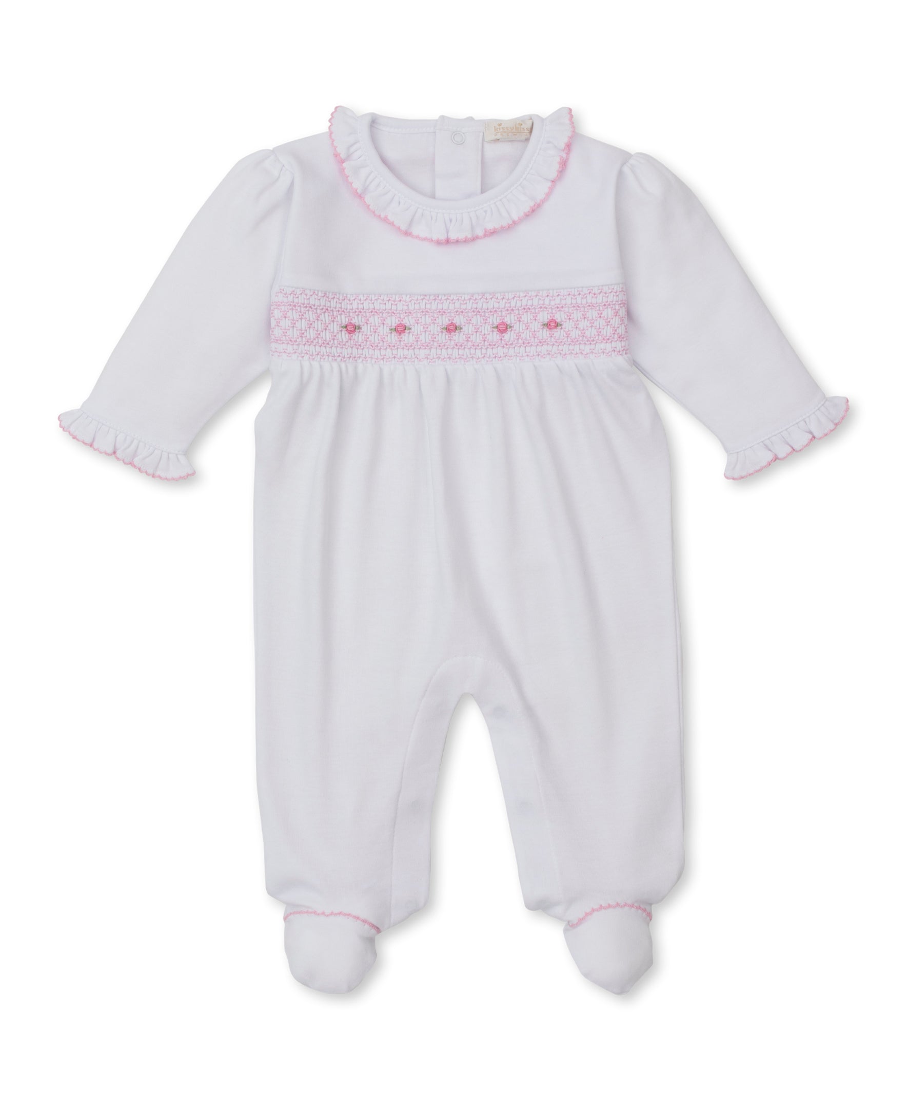 SCE Rose Blooms White/Pink Hand Emb. Footie - Kissy KissySCE Rose Blooms White/Pink Hand Emb. Footie - Kissy Kissy