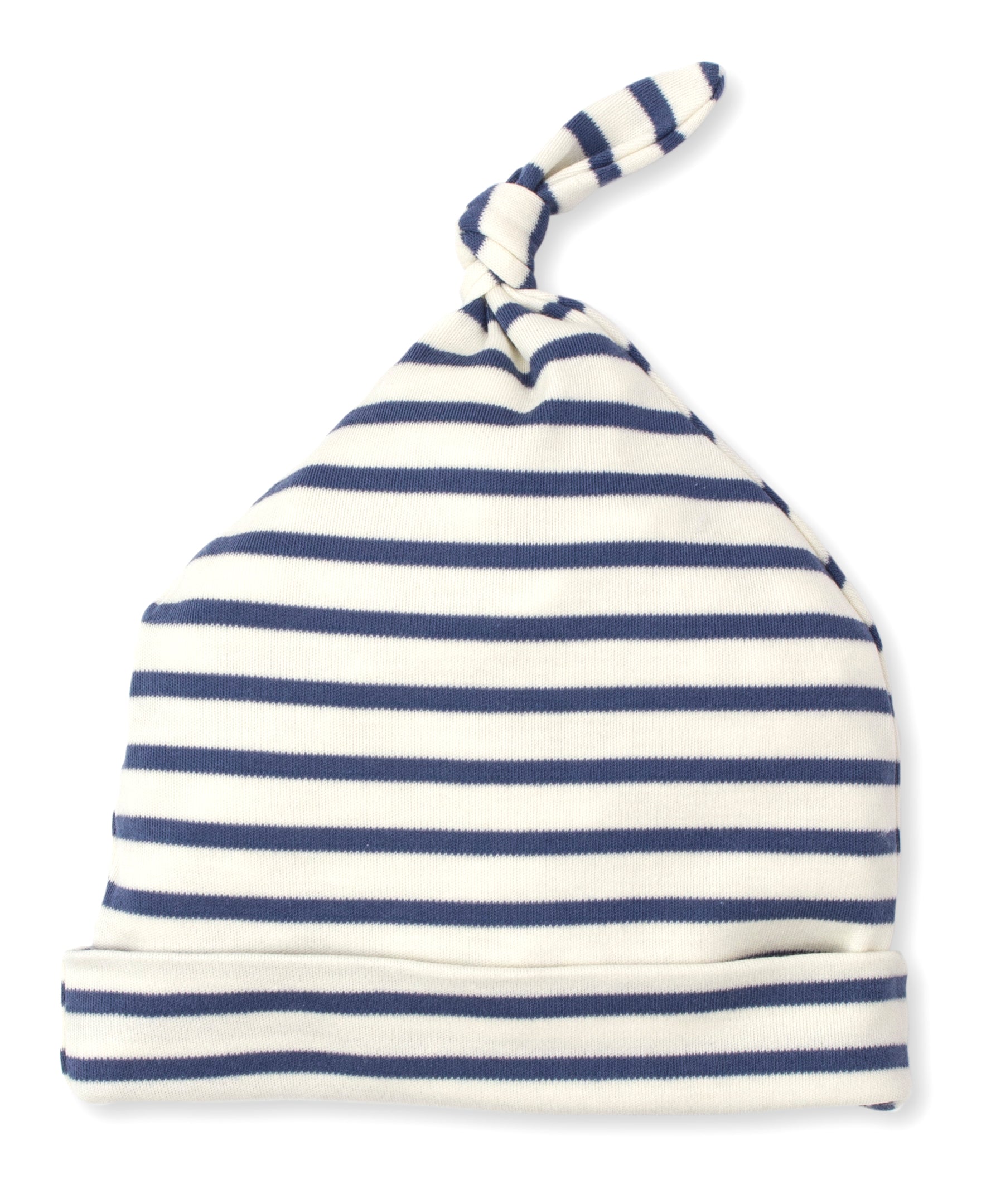 This knotted stripe hat will keep your baby's head warm and covered. Made from 100% Pima cotton for the softest, snuggliest fit.