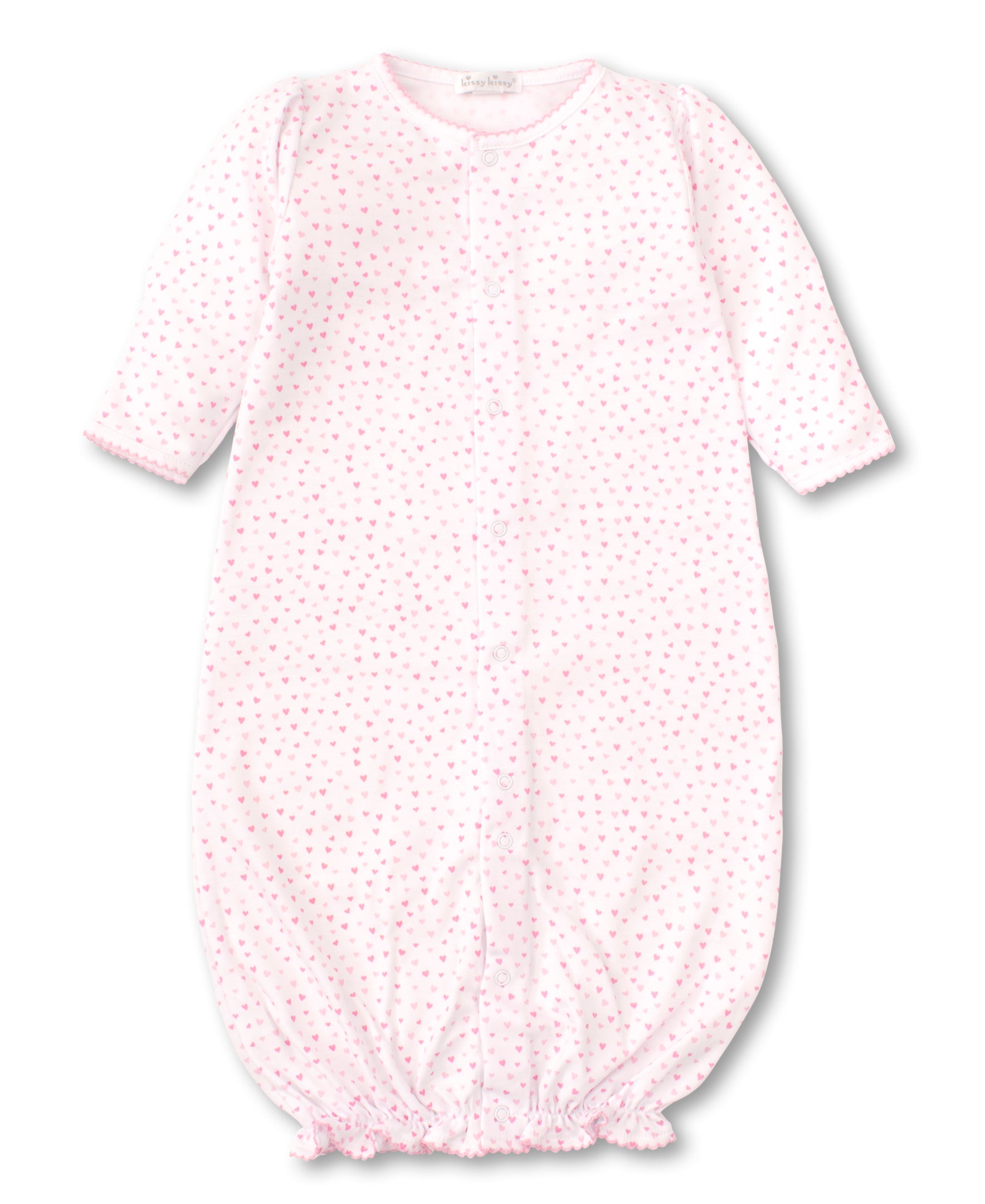 Tiny hearts pattern this cozy convertible gown for your baby girl. Snaps on legs allow for easy conversion to playsuit; made from the softest Pima cotton for ultimate comfort.