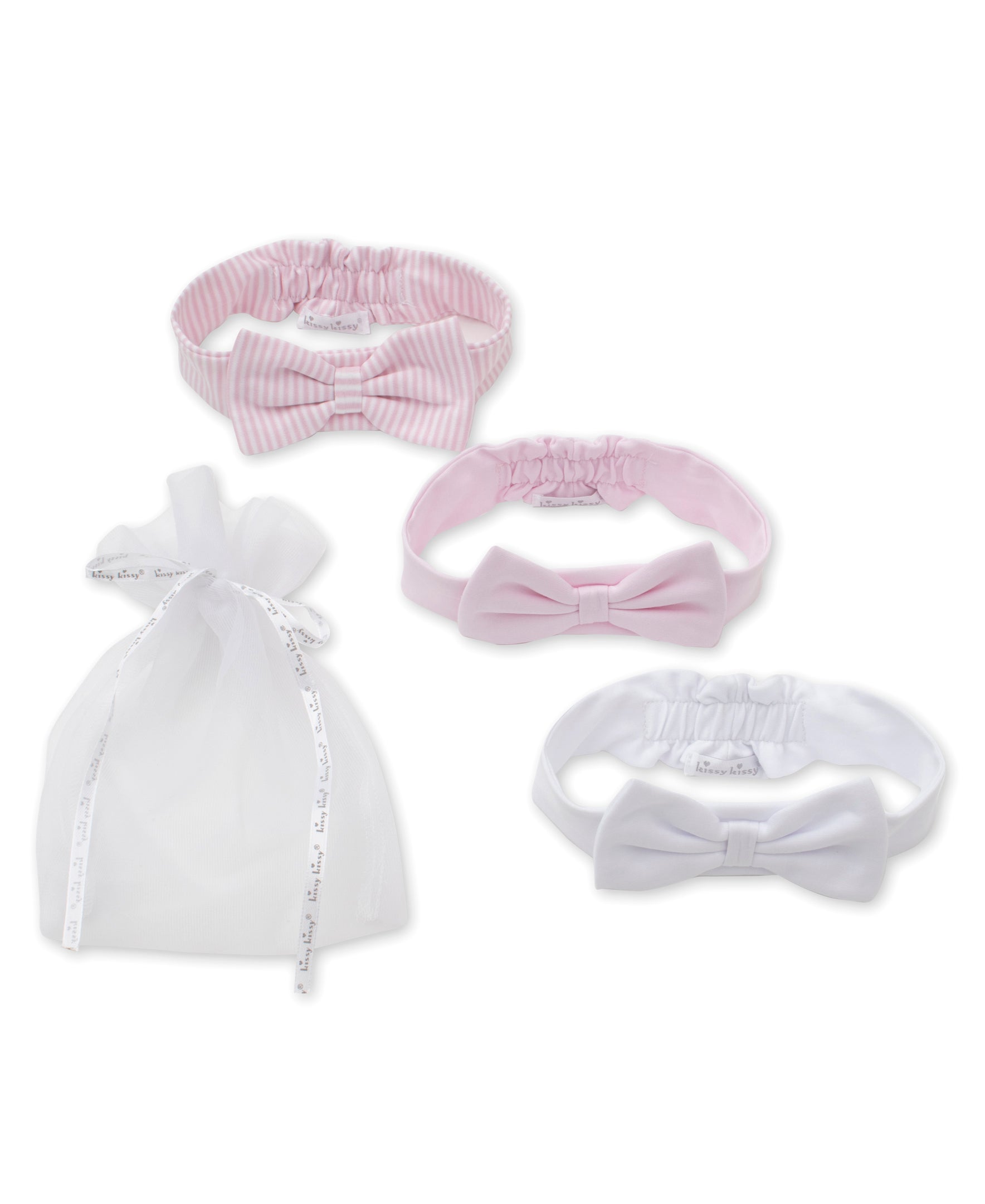 The perfect gift to give or receive, our set contains three coordinating headbands tucked inside a tulle bag. Made from ultra soft pima cotton and the perfect addition to any outfit, our soft, stretchy headbands are topped with a bow for a look as sweet as she is.